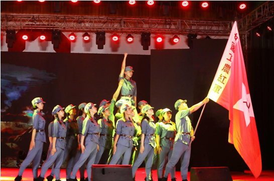 大會休會10分鐘后,一曲《紅旗頌》拉開了文藝匯演序幕。飄揚的紅旗蕩起火紅的海洋,帶人進入革命的世界,心情豪邁,催人奮進。緊接著,《我的祖國》、《十送紅軍》、《唱支山歌給黨聽》、《朗誦》、《打靶歸來》、《在希望的田野上》、《戲曲》、《祖國不會忘記》等節(jié)目一個比一個精彩,一曲比一曲高亢,歡快的鼓點、優(yōu)美的舞姿將中華兒女團結之心、愛國之情、幸福之悅演繹得酣暢淋漓,現(xiàn)場氣氛熱烈而又溫馨。特別是情景劇《十送紅軍》,悠揚的嗩吶聲、優(yōu)美的舞姿,展現(xiàn)了紅軍前仆后繼、披荊斬棘的頑強戰(zhàn)斗,深深表達了革命根據(jù)地人民與紅軍難舍難分的情感?!独收b》節(jié)目中講述了黨的百年奮斗史,展示了黨的豐功偉績,謳歌了偉大新時代。一段段的深情回憶、一句句鏗鏘誓言,激發(fā)出拳拳愛黨心、濃濃愛國情。節(jié)目匯演中間,播放了《安陽中聯(lián)轉(zhuǎn)型升級宣傳片》、《企業(yè)文化宣傳片》,全體黨員聚精會神地觀看,暗淡的燈光下涌動著對企業(yè)最為強烈地情感,最為堅定的意志。